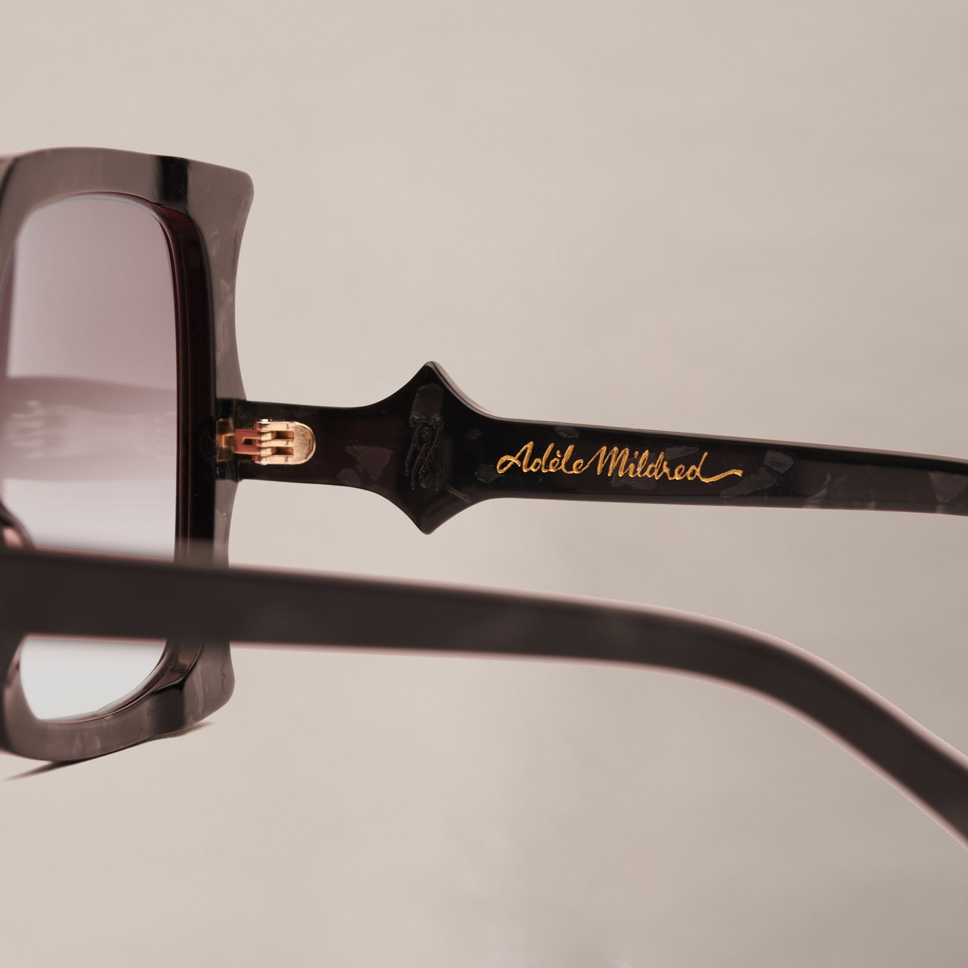 Style name and the Adele Mildred logo are etched with gold inlay onto the inside temples