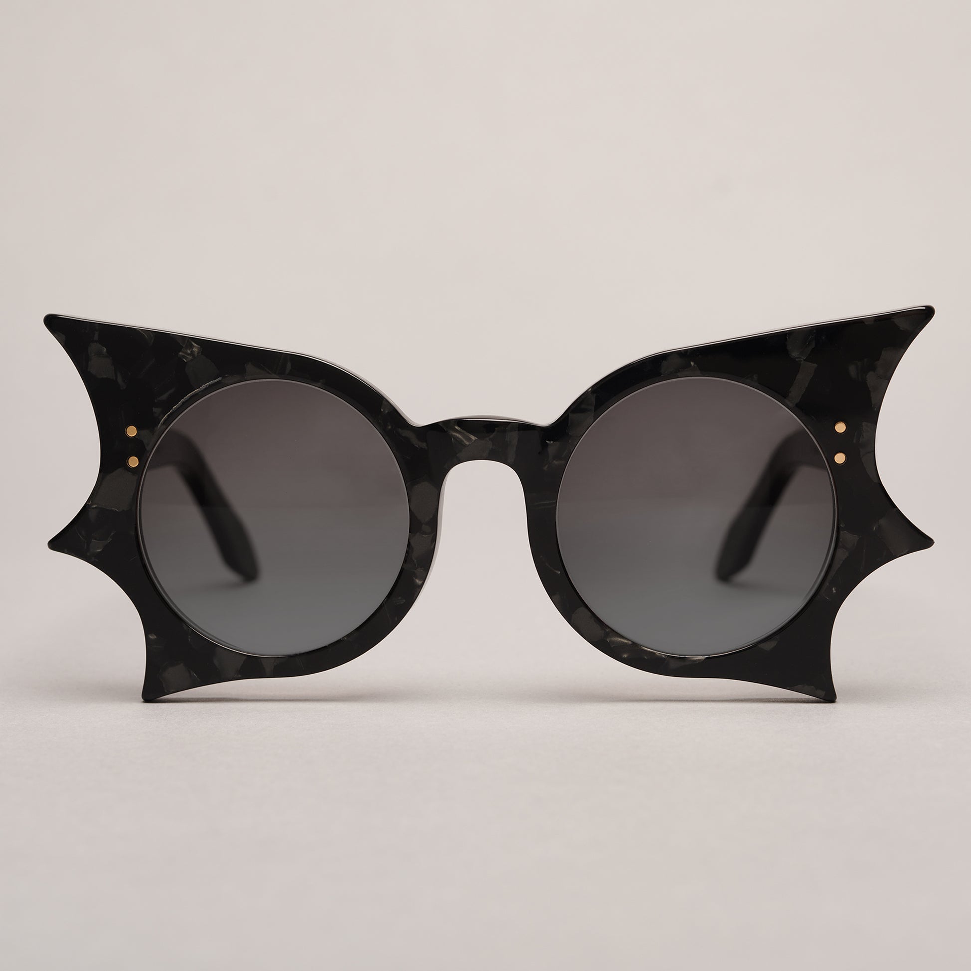 Peggy is a modern iteration of the iconic butterfly sunglasses made by Edward Melcarth for Peggy Guggenheim in 1948. This design implores you to channel your inner Peggy; be a patron to your dreams; the outsider, the extrovert, the lone wolf and a muse to all the lovers you’ve yet to meet.