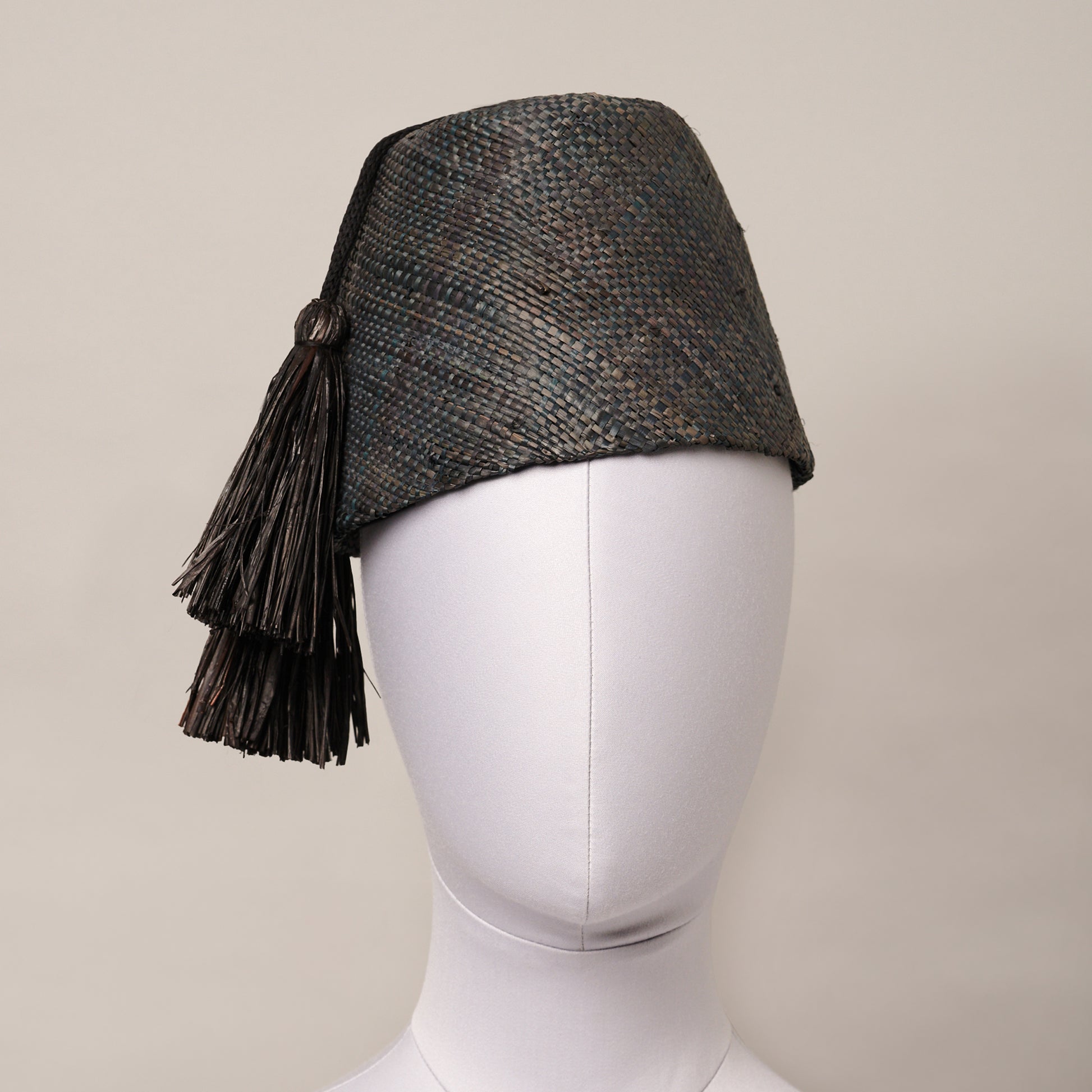 A fresh take on the classic fez, crafted in natural straw. Featuring a pair of hand-tied raffia tassels, this piece brings a unique twist to your summer wardrobe.