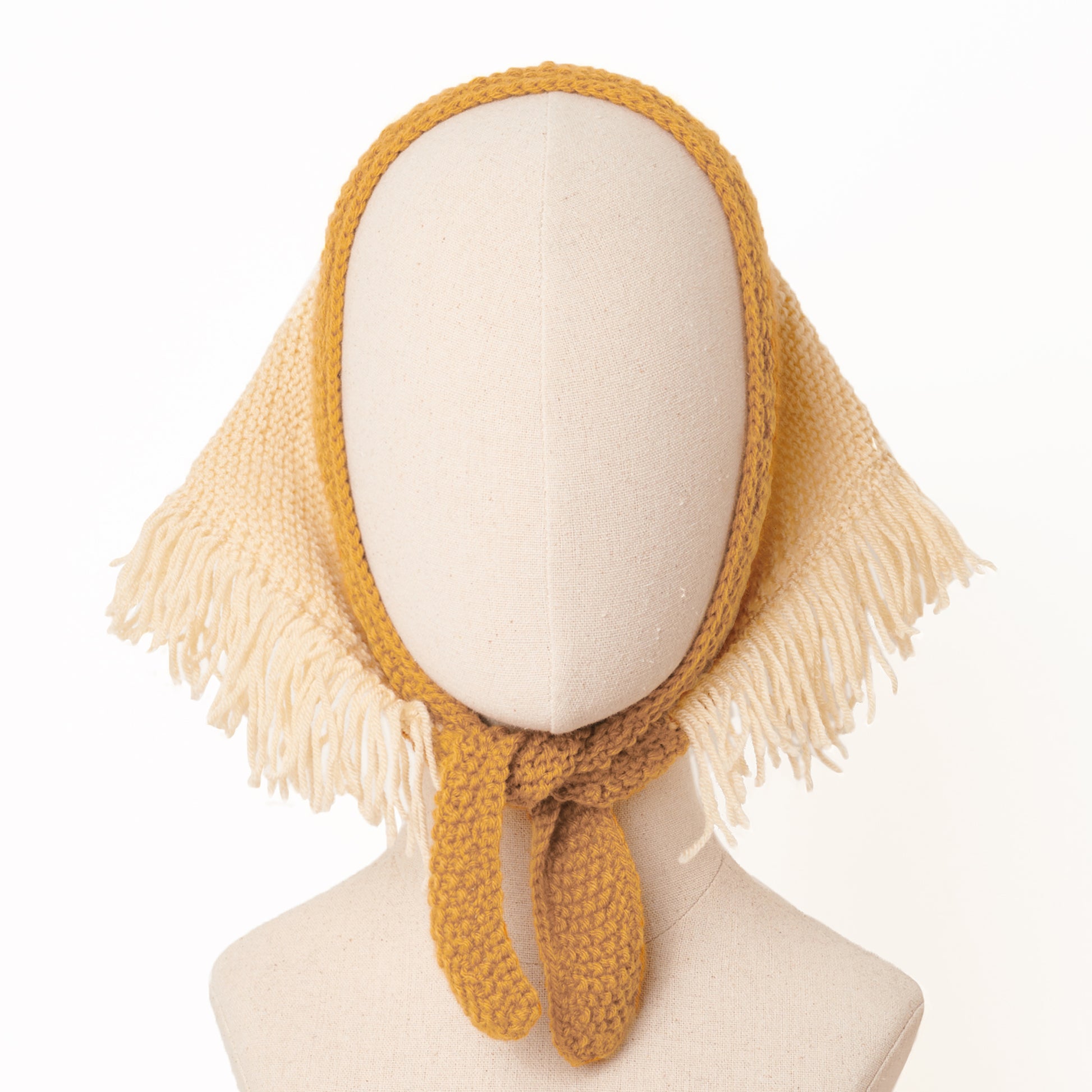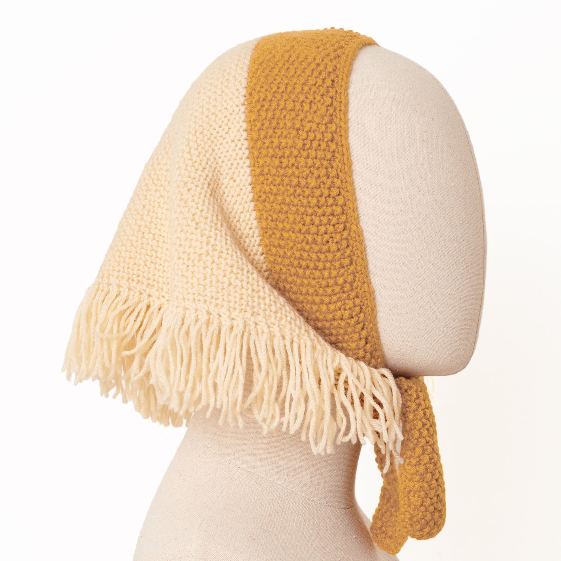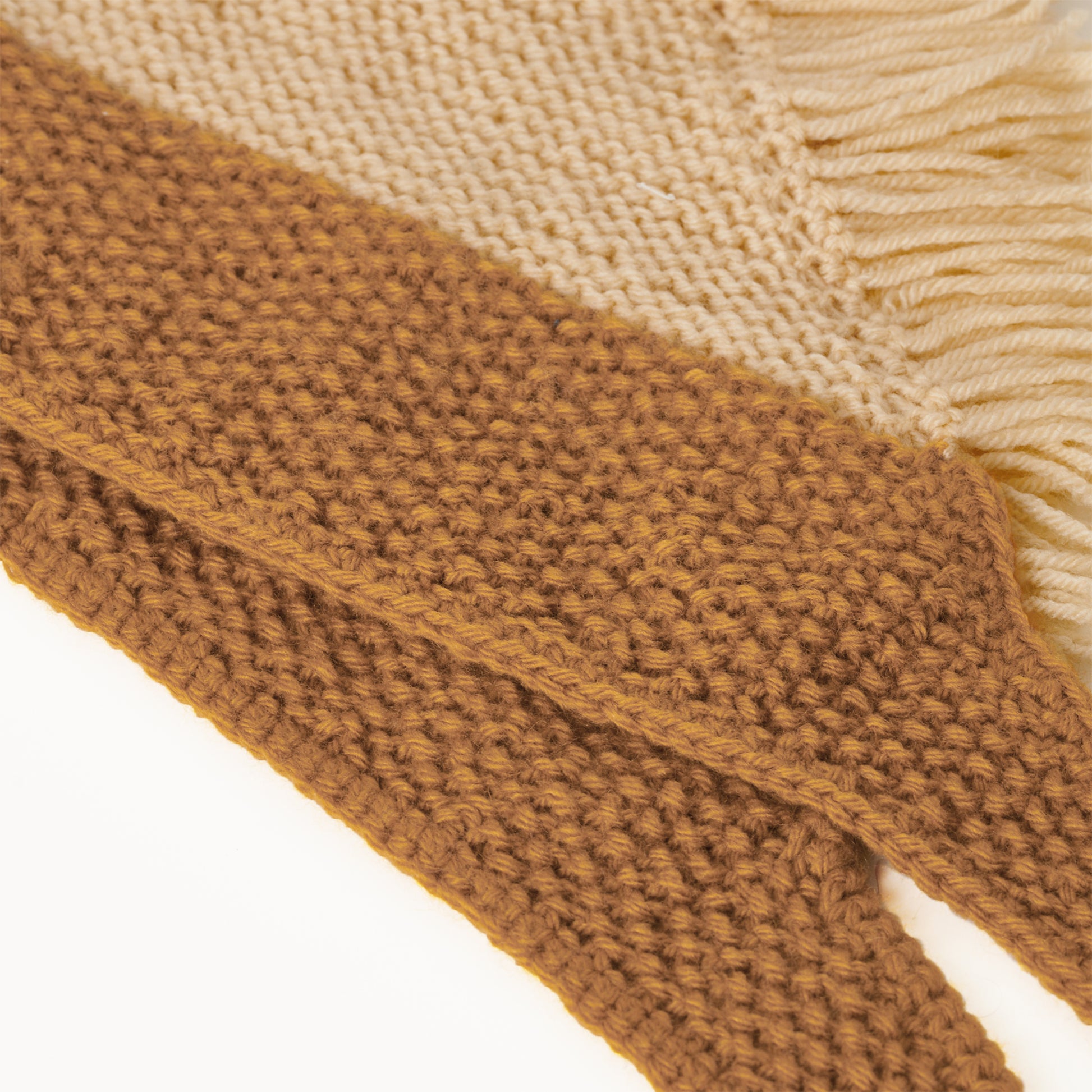 Ultra soft hand-knitted two tone tassel scarf in gold and ivory. 100% Falkland Islands wool.