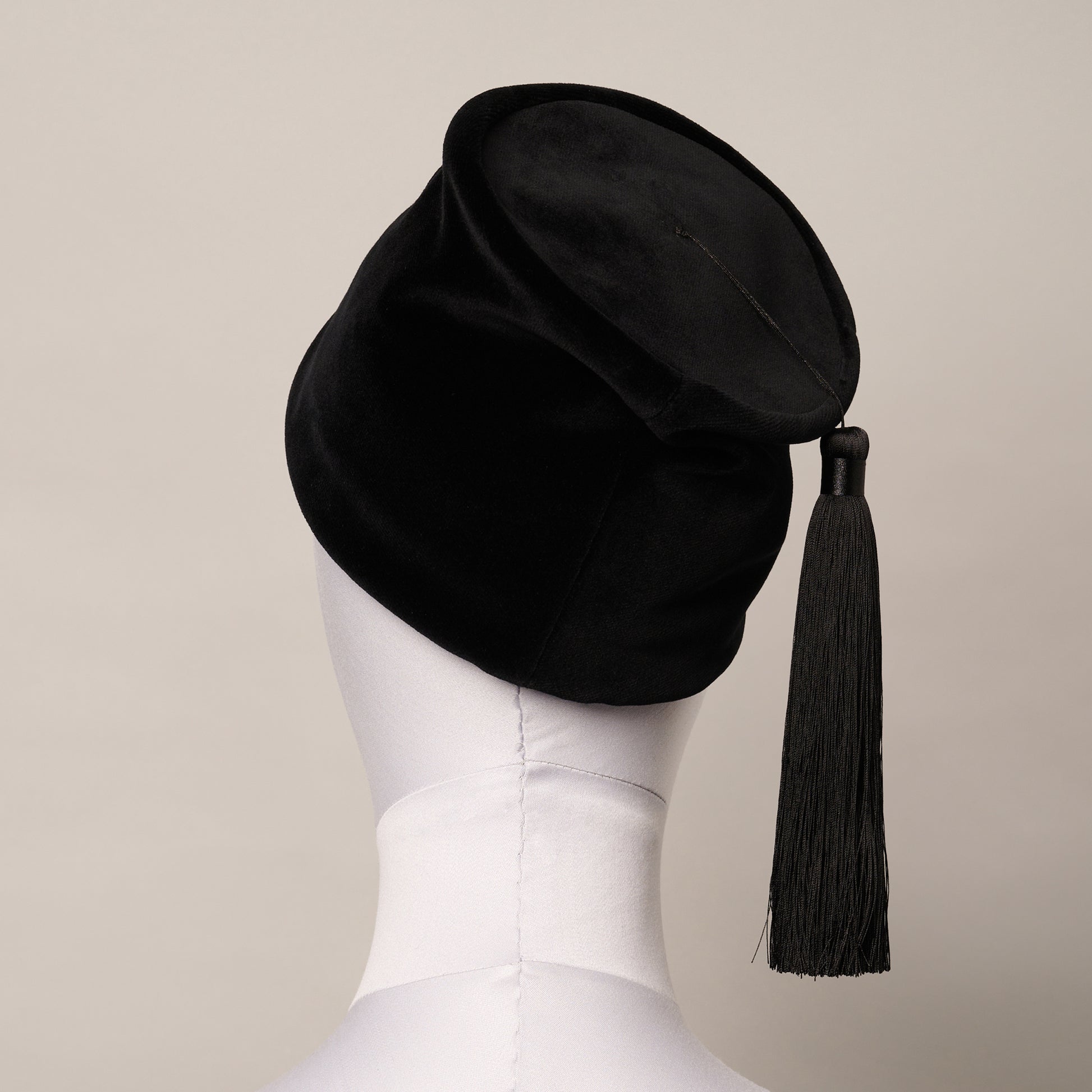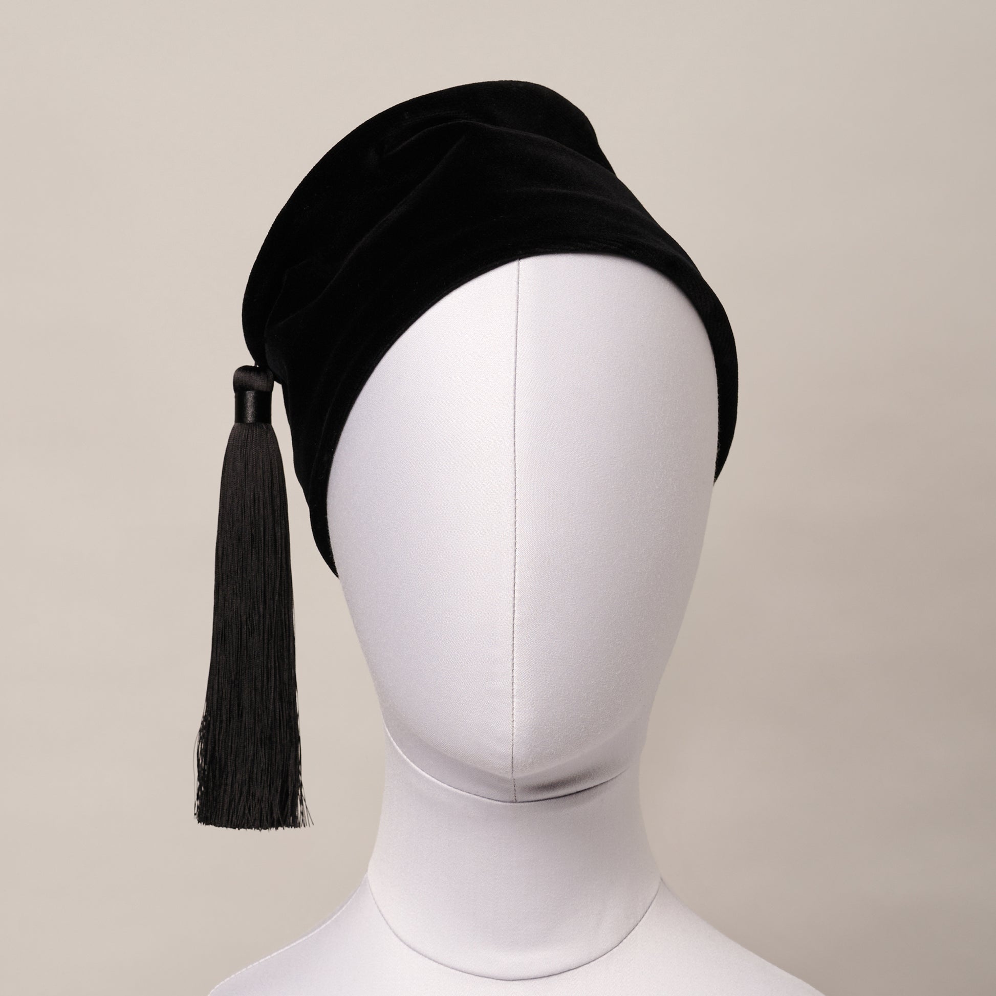 A soft, slouching fez made from rich Italian cotton velvet. It combines classic form with a relaxed, contemporary feel and is finished with a luxurious black tassel. Cotton lined.